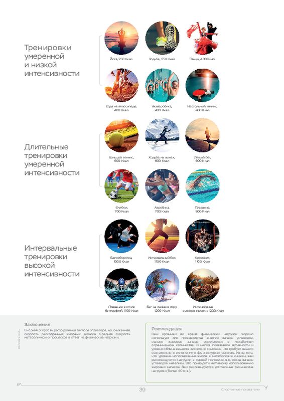 - Переносимость нагрузок, потенциал к восстановлению и т.д.