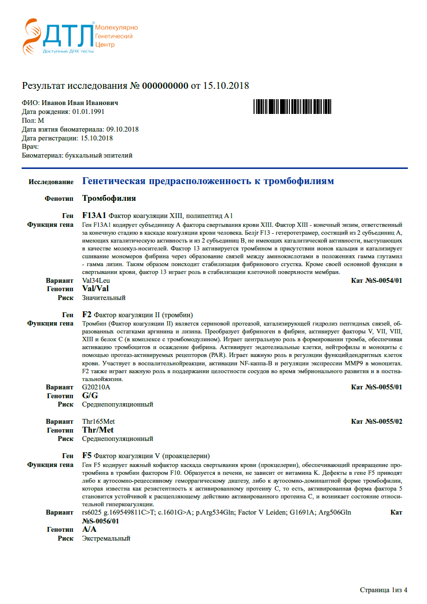 Сдать ДНК тест на предрасположенность к тромбофилии